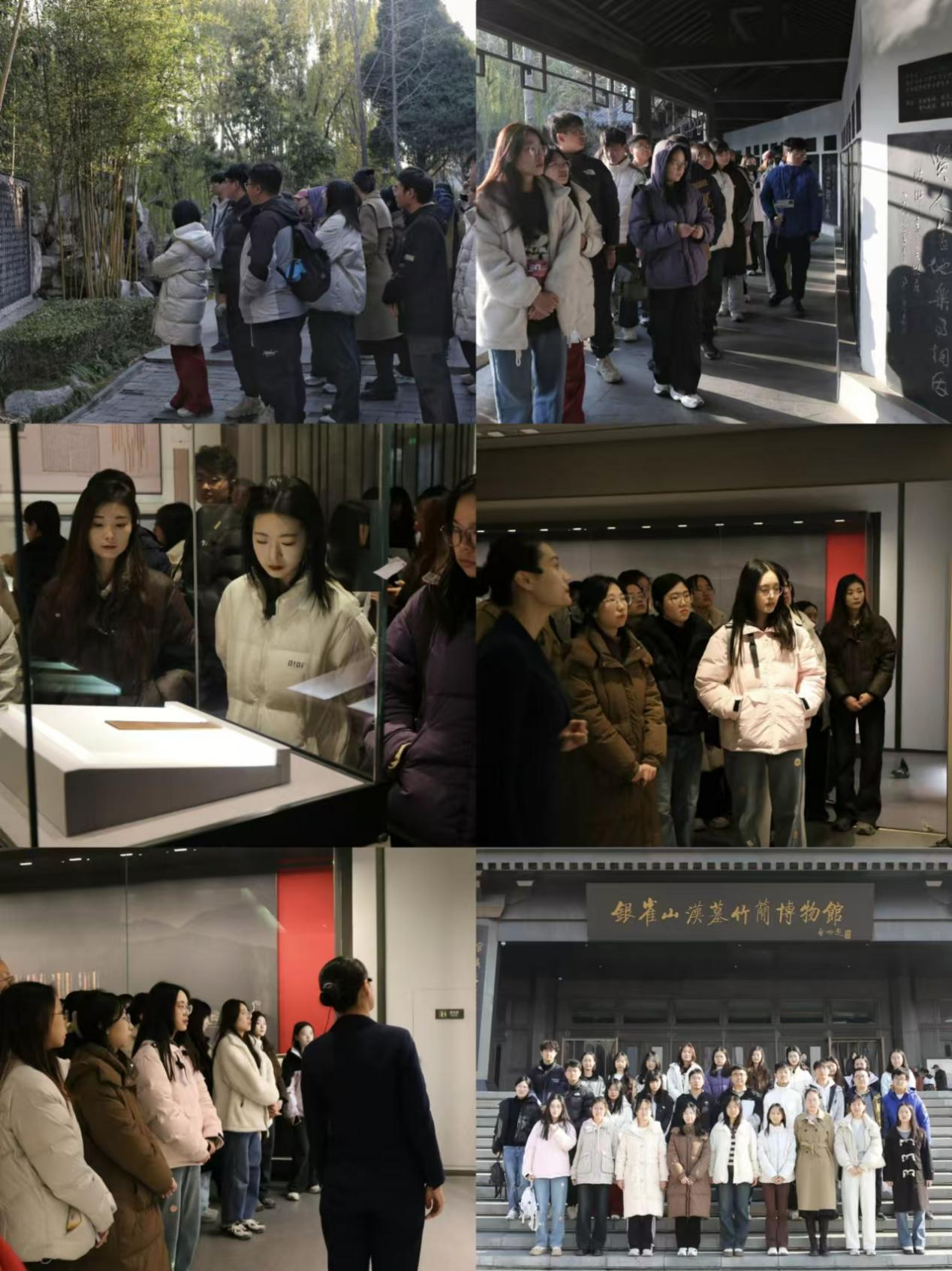 师生们前往王羲之故居,在讲解员的带领下,依次参观了解了王右军祠、澄怀堂、妙墨亭的历史文化,欣赏了古今著名书法家留下的书法墨宝;参观了园区的晋墓博物馆,其中有两座魏晋时期的墓葬,通过参观,师生们对魏晋时期的社会风貌、丧葬习俗等有了更直观的认识。之后师生前往银雀山汉墓竹简博物馆参观。在讲解员的讲解下,师生们深入了解了银雀山汉墓出土的珍贵竹简,特别是《孙子兵法》、《孙膑兵法》等文献的历史价值与军事智慧;并对简牍文化等有了进一步的拓展认知。拓宽学术视野的同时,更激发了师生对文化遗产保护的责任感和使命感。