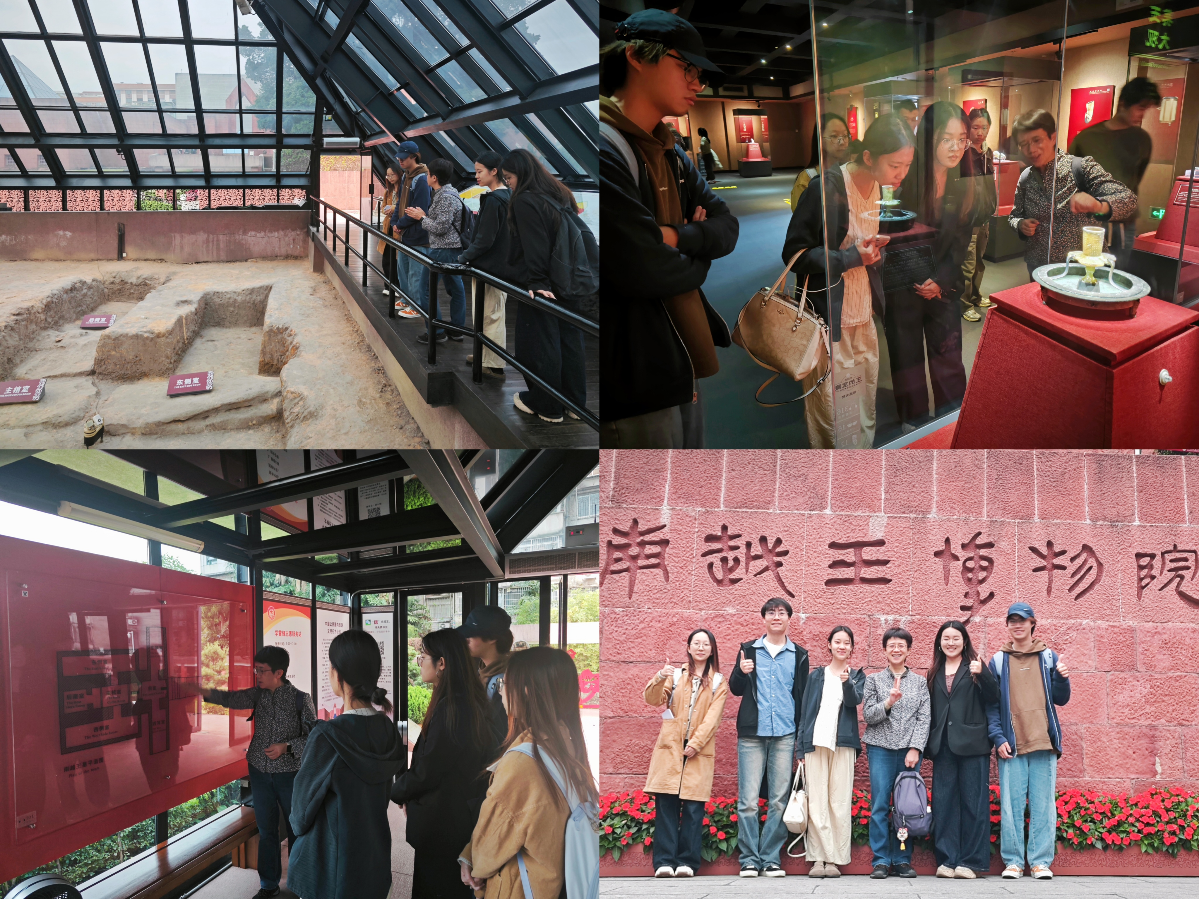 随后,师生一行走进被称为“岭南文化之光”的南越王博物院王墓展区,紧随讲解老师的思路,与两千多年前的南越国进行了一场跨时空的对话。同学们从上方俯瞰墓室布局,并近距离观察“文王行玺”、“丝缕玉衣”、“铜承盘高足玉杯”等国家瑰宝,追寻古国遗韵,触摸历史脉搏。此次探访,让同学们在润物细无声中得到传统文化的浸润,激发了文化传承的自觉。