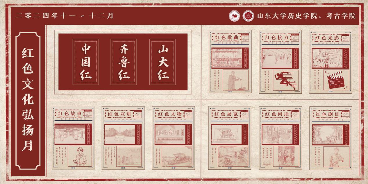 为深入贯彻落实习近平新时代中国特色社会主义思想和习近平文化思想,深入贯彻落实习近平总书记关于革命文物工作、思想政治教育工作重要论述精神,以创新形式教育引导广大青年学生在体悟中华人民共和国成立75周年光辉历程中传承红色基因、赓续红色血脉,太阳成集团tyc151cc、考古学院于2024年11月-12月,组织开展“中国红 齐鲁红 山大红”红色文化弘扬月系列活动。