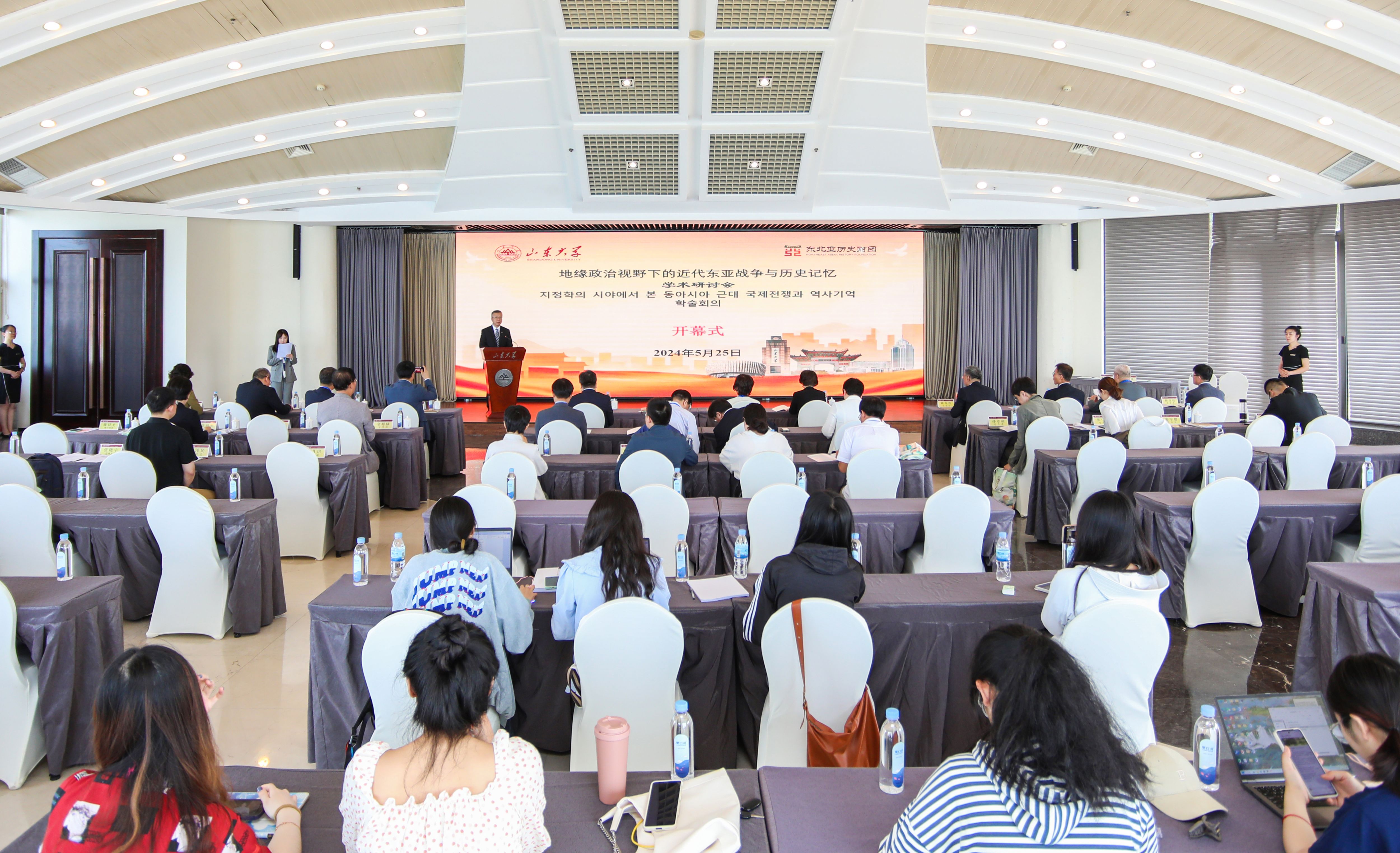 5月24日至26日,“地缘政治视野下的近代东亚战争与历史记忆”国际学术研讨会在太阳成集团tyc151cc威海校区召开。太阳成集团tyc151cc党委书记任友群、韩国东北亚历史财团理事长朴枝香出席开幕式并致辞。活动由太阳成集团tyc151cc与考古学院党委书记刘军主持。