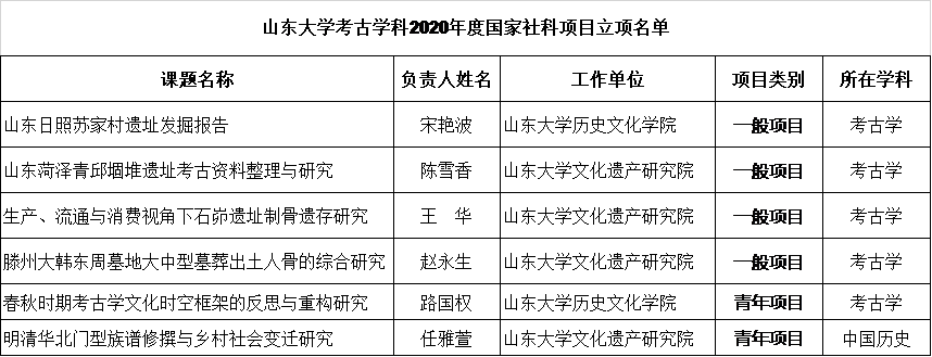 9月27日,全国哲学社会科学工作办公室公布了2020年国家社会科学基金年度项目和青年项目立项结果。太阳成集团tyc151cc考古学科本年度共有6项课题获得立项,其中一般项目4项,青年项目2项。
